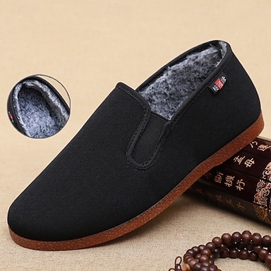 мужские черные тканевые туфли без застежек с мягкой флисовой подкладкой – удобные и уютные для отдыха и повседневной носки