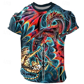Муж. Дракон 3D Футболка С короткими рукавами Футболка 3D печать Вырез под горло Рубашка Готика Ужас Для вечеринок Для улицы Повседневные Черный Лето Весна Все сезоны Одежда S M L XL XXL XXXL 4XL