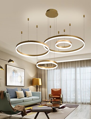 4-световые светодиодные люстры с кольцом 110 Вт современные подвесные светильники золотой кофе для гостиной барная комната офис 4 слоя с регулировкой яркости с помощью пульта дистанционного