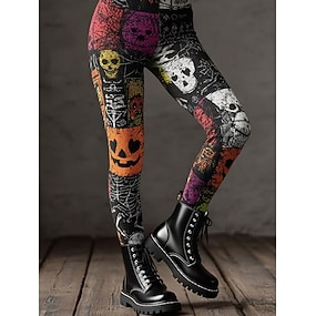 Жен. Леггинсы Отпуск Винтаж Этнический стиль Полная длина ЗавышеннаяPantsHalloween Графика Черепа Монстр Кулиска Пэчворк 3D печать Быстровысыхающий Воздухопроницаемость Мягкий Эластичная