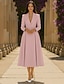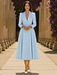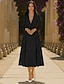 Платье-смокинг А-силуэт Официальные Стретч-креп Элегантный стиль Длинный рукав Ниже колена Длина миди Лацкан с острым углом V-образный вырез Однобортный с 2 пуговицами