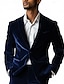 Мужской Бизнес Повседневные Бархатный костюм Лацкан с острым углом Синий Бордовый Мода Повседневные Однотонный Узкий крой Набор из 2 предметов Однобортный с 2 пуговицами