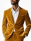 Мужские повседневные рождественские бархатные костюмы с заостренными лацканами, желто-красные, однотонные, стандартного кроя, из двух частей, двубортные, на шести пуговицах