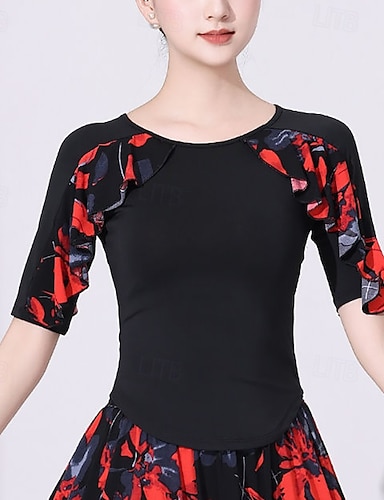 Латино Кофты Рисунок Оборки Планка Жен. Выступление Учебный Рукав до локтя Завышенная талия Полиэстер