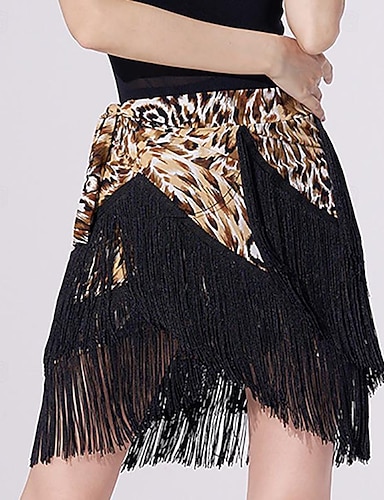 Латино Бальные танцы Юбки леопардовый принт Рисунок С кисточками Жен. Выступление Учебный Завышенная талия Молочное волокно