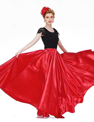 Латино Юбки На эластичной ленте Жен. Выступление Средняя талия Матовый сатин