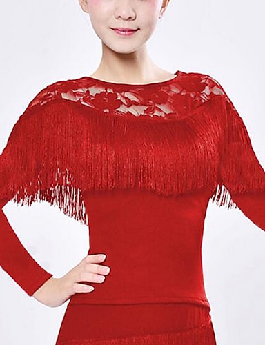 Спортивная одежда Латинская танцевальная сальса Кофты Кружева С кисточками Однотонные Жен. Учебный Выступление Длинный рукав Завышенная талия Спандекс