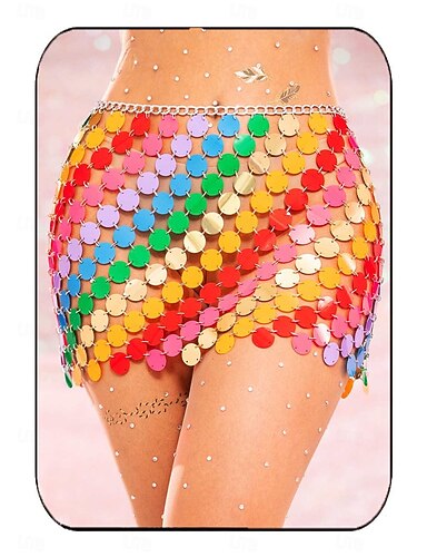 Женская мини-юбка с радужной кольчугой и блестками, блестящие точки для танца живота, бедра, юбки с цепочкой на талии