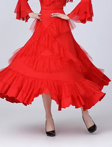 Латино Латинская танцевальная сальса Юбки Чистый цвет Жен. Выступление На каждый день Средняя талия Тюль