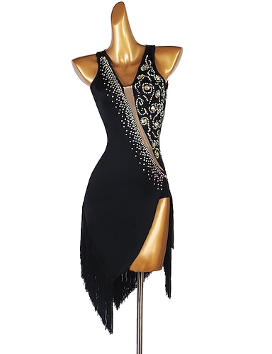 Латино Платье С кисточками Стразы Жен. Выступление Учебный Без рукавов Спандекс