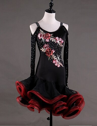 платье для латиноамериканских танцев сальса аппликации кристаллы/стразы женское выступление длинный рукав высокий спандекс жоржет