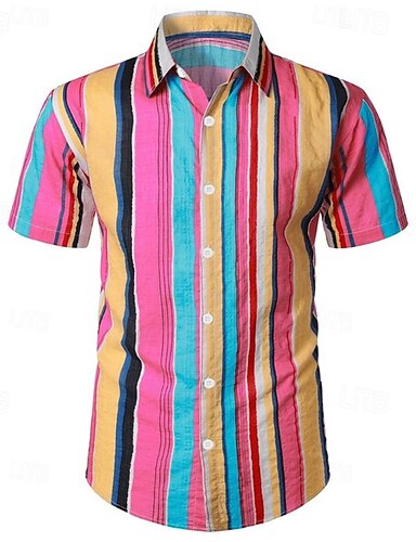Муж. Рубашка Летняя рубашка Повседневная рубашка Пляжная рубашка Кнопка рубашка Полосатые рубашки Розовый С короткими рукавами Полоски Отложной Отпуск Праздники Одежда Полиэстер