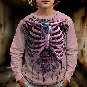 Хэллоуин Мальчики 3D Черепа Футболка Длинный рукав Весна Осень Мода Классический Дети 4-12 лет Вырез под горло на открытом воздухе Повседневные Стандартный