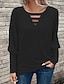 женская толстовка элегантная винтажная однотонная рабочая повседневная повседневная с круглым вырезом пэчворк длинный рукав черный белый синий серый осень зима