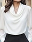 Жен. Рубашка Elegant Нарядный Сатин / атлас Сплошной цвет Полотняное плетение Элегантный стиль Стиль Длинный рукав Асимметричный вырез Обычные топы Праздники На выход Рюши Черный Белый Абрикосовый