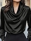 Жен. Elegant Нарядный Сатин / атлас Блуза Полотняное плетение Элегантный стиль Стиль Для офиса Длинный рукав Вырез-хомут Обычные топы Черный Белый Абрикосовый Осень
