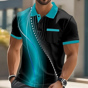 Муж. Геометрический принт Линии Поло С короткими рукавами Футболки поло Рубашки с воротником Деловая одежда на открытом воздухе Одежда для спорта и отдыха На каждый день Карман 3D печать Лето