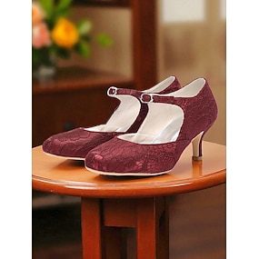 Женские туфли Мэри Джейн бордового цвета с кружевом, каблуком-рюмочкой и пряжкой из стразов — элегантные туфли в стиле ретро 1920-х годов для женщин, идеально подходящие для свадеб и танцевальных
