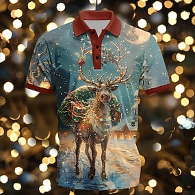 рождественский мужской рождественский поло с 3D-принтом с изображением животных Rudolph повседневный короткий рукав повседневная одежда для отпуска лето пуговицы 3D-принт воротник синий