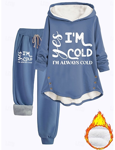 Женский комплект из 2-х предметов свитшот с капюшоном флисовая подкладка комплект из двух предметов и брюки принт на буквах теплое комфортное мягкое домашнее повседневное одеяние флисовое теплое