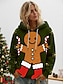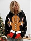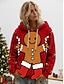 Жен. Толстовка с капюшоном и пуловером Графика Дед Мороз Новогодняя ёлка Элегантный стиль Теплый Активный Длинный рукав Капюшон Обычные топы Для улицы На каждый день Повседневные Кулиска С принтом