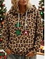 Жен. Pullover Худи Леопард Буквы Мода Уличный стиль На каждый день Длинный рукав Капюшон Обычные топы На каждый день Повседневные Кулиска С принтом Коричневый Весна Осень