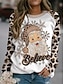 Жен. Pullover Графика Дед Мороз На каждый день Длинный рукав Вырез под горло Обычные топы Повседневные Праздники Коричневый Весна Осень Зима