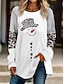 Новогодняя тематика Жен. Футболка Графика В клетку В снежинку Винтаж Стиль Классика Длинный рукав Вырез под горло V-образный вырез Обычные топы Повседневные Пуговицы С принтом Асимметричный вырез