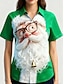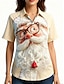 Новогодняя тематика Жен. Рубашка Графика Животное 3D Винтаж тропический Повседневные Без рукавов С короткими рукавами Рубашечный воротник Обычные топы Повседневные мудрец зеленый Коричневый Зеленый