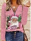 Новогодняя тематика Жен. Футболка Графика Дед Мороз Винтаж Мода Стиль Длинный рукав Вырез под горло V-образный вырез Обычные топы Повседневные Молния С принтом Черный Розовый Красный Весна Осень Зима