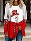 Женская футболка Праздничная Тематическая Футболка Длинный рукав Принт Снежинка Дерево Украшение Кэжуал Красный Зимняя Одежда Обычная посадка Праздничный топ