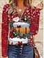 Новогодняя тематика Жен. Футболка Графика Новогодняя ёлка Винтаж Стиль Классика Длинный рукав V-образный вырез Обычные топы Повседневные С принтом Красный Зеленый Серый Весна Осень Зима