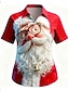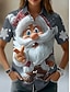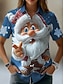 Новогодняя тематика Жен. Рубашка Графика Дед Мороз Винтаж тропический Повседневные Без рукавов С короткими рукавами Рубашечный воротник Обычные топы Повседневные Красный Синий Лиловый Зеленый Серый