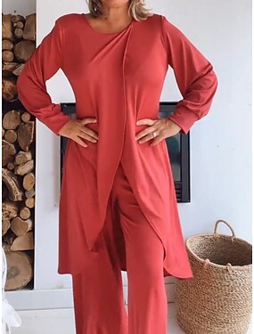 Жен. Активный Уличный стиль Блуза Комплекты брюк Толстовка Длинный рукав Вырез под горло Сплошной цвет Сплит Бедро Отпуск На каждый день На выход Розовый Красный Оранжевый Осень Стандартный