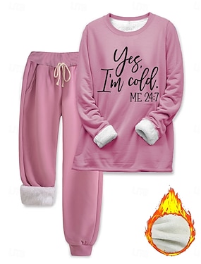 Жен. Теплый Повседневные Комплекты из двух предметов Спортивный костюм Комплекты брюк Длинный рукав Вырез под горло Графика Буквы Кулиска С принтом Повседневные Черный Розовый Синий Осень