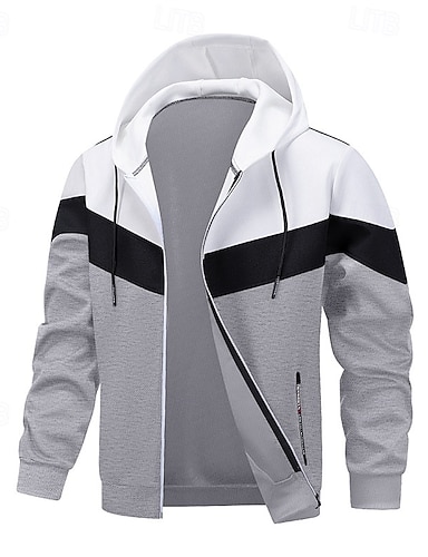 Муж. Толстовка Толстовка с капюшоном на молнии Винно-красный Черный Темно синий Хаки Светло-серый Капюшон Полотняное плетение Пэчворк Цветовые блоки Для занятий спортом Повседневные Праздники