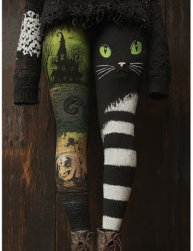 Жен. Леггинсы Отпуск Винтаж Этнический стиль Полная длина ЗавышеннаяPantsHalloween Графика Животное Кот 3D печать Ассиметричный Быстровысыхающий Воздухопроницаемость Мягкий Эластичная