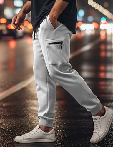 Муж. Вафельная ткань Штаны Джоггеры Повседневные брюки Вафельные штаны Кулиска Сплошной цвет Комфорт Полная длина на открытом воздухе Повседневные Уличная одежда Мода Классический