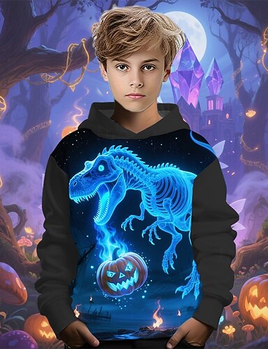 Хэллоуин Мальчики 3D Тыква Динозавр Призрак Толстовка Длинный рукав Весна Осень Мода Уличный стиль Дети 4-12 лет Капюшон на открытом воздухе Повседневные Стандартный