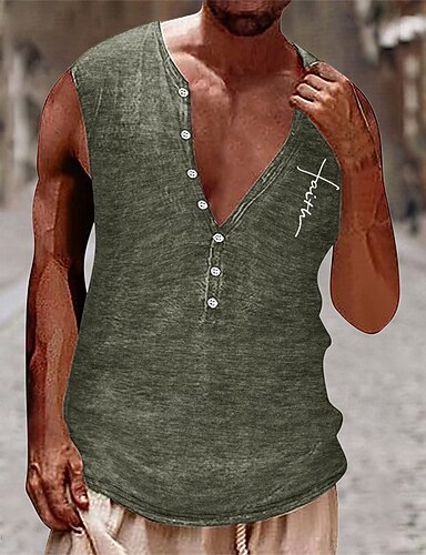 Муж. Безрукавка Рубашка Хенли Без рукавов Круглый Хенли Лето Трескаться Мода Оригинальный рисунок Спортивные Пуговицы на открытом воздухе Повседневные Фитнес Синий Светло-серый Военно-зеленный
