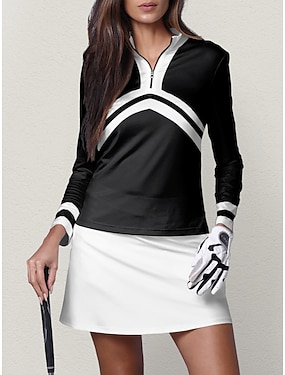 Жен. Футболка-поло Темно-синий Черный Длинный рукав Защита от солнца Верхняя часть Контрастных цветов Осень Зима Женская одежда для гольфа Одежда Одежда Одежда