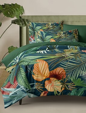 Комплект постельного белья в тропическом растительном стиле, 100% хлопок, мягкое и дышащее постельное белье с принтом пышной тропической листвы, легкое и прочное, удобное для любого сезона, простое в уходе