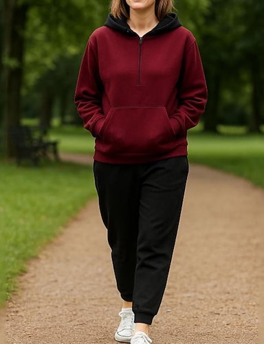 Жен. Толстовка с капюшоном Флисовые спортивные костюмы с карманом Однотонный Наборы одежды Осень Красный Темно-синий Разрабатывать Тренировки Бег Завышенная Сохраняет тепло Длинный рукав Спорт