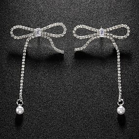Жен. Серьги-гвоздики С кисточками драгоценный Бант Симпатичные Стиль Стиль Жемчуг Искусственный бриллиант Серьги Бижутерия Серебряный / Золотой Назначение Свадьба Для вечеринок Подарок Повседневные 1