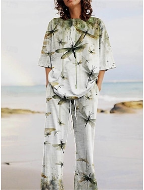 Жен. Активный Мода Комплекты брюк Рукав 3/4 Вырез под горло Животное С принтом Отпуск Повседневные Праздники Темно-зеленый Зеленый Серый Лето Стандартный