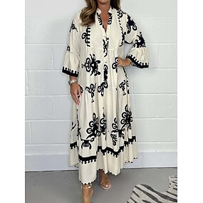 Жен. Длинное платье Повседневное платье Шикарные платья в стиле бохо Платье в стиле бохо Богемия Стиль На каждый день Отпуск Повседневные Пляж Свободное облегание Графика Рукав 3/4 V-образный вырез