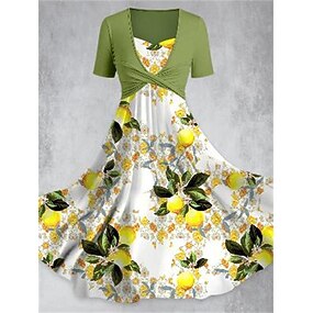 Жен. Платье средней длины Цветочное платье Платье с принтом Мода Классика Современное на открытом воздухе Повседневные Праздники Стандартный Цветы С короткими рукавами Вырез под горло Белый Зеленый