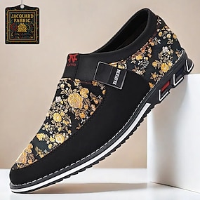 мужские черно-золотые слипоны с цветочным принтом – модная обувь из жаккардовой ткани для повседневной носки и стильных случаев