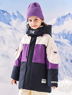 Дети Девочки Пух Детская куртка-пуховик Активный Карман Школа Пальто Верхняя одежда 4-13 лет Зима Черный Лиловый