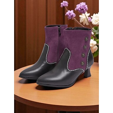 Женские ботильоны в викторианском стиле 1900-х–1910-х годов, контрастные цвета, замша и кожа, лоскутное шитье, средний каблук, отделка пуговицами, для встреч и косплея в винтажном стиле